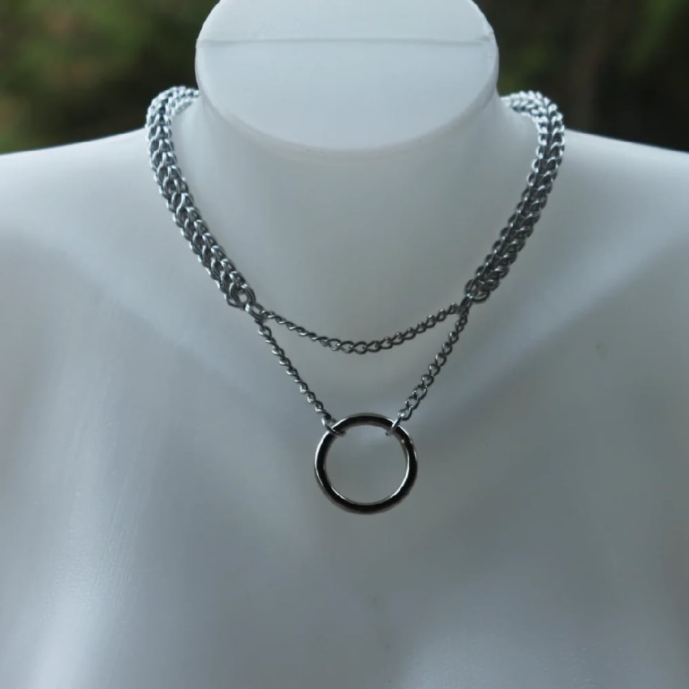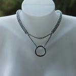 Locking day collar made with bright aluminum, stainless steel chain, zinc alloy o-ring, and brass padlock. Comes with two keys.